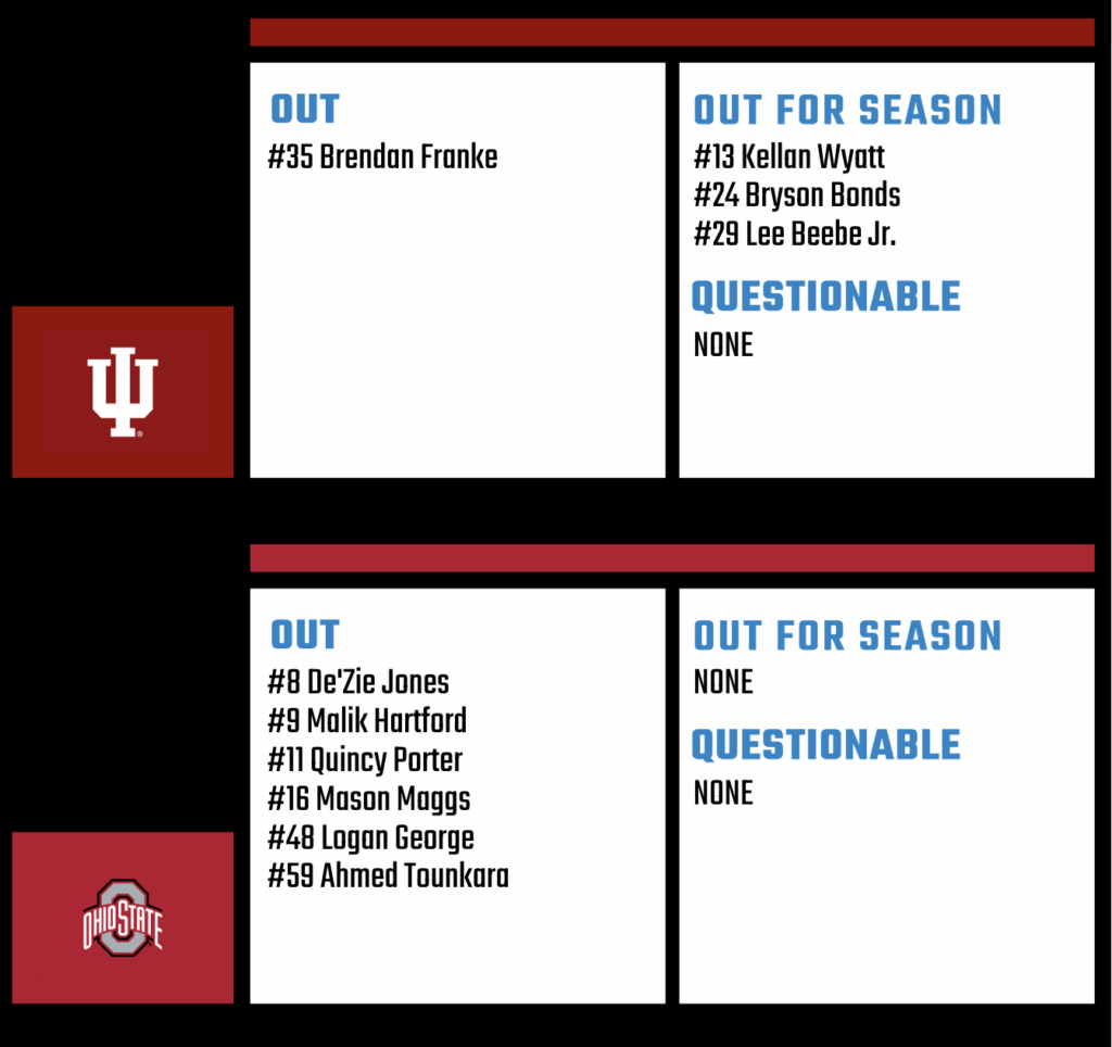 The Hoosiers are 4-point underdogs against the Buckeyes with an over/under of 46.5 points per BetMGM.