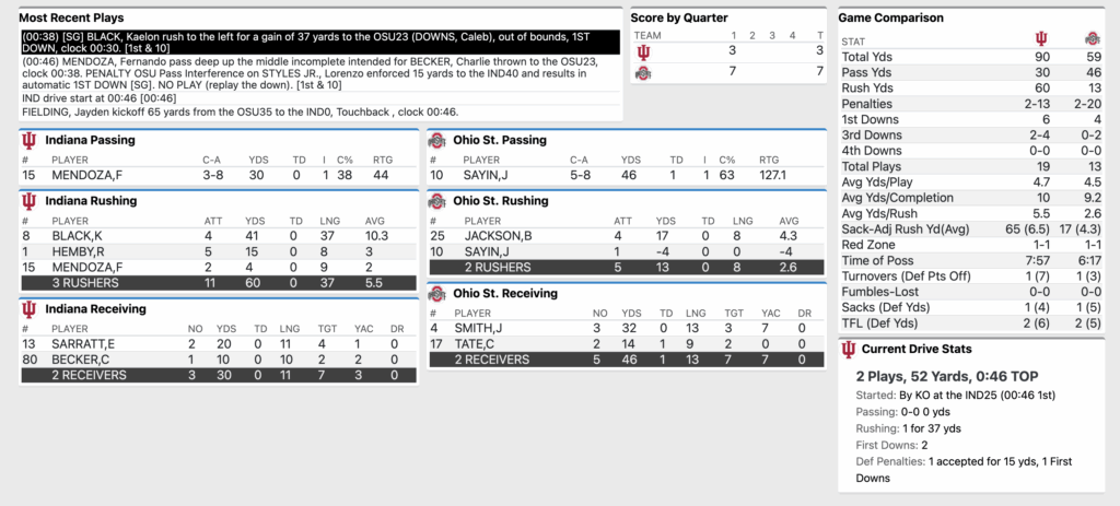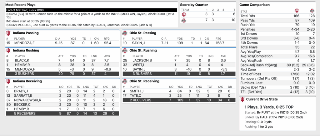 HALFTIME: No. 1 Ohio State 10, No. 2 Indiana Football 6