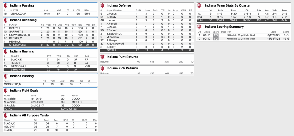 Kaelon Black broke off a 37 yard run on the play to get Indiana into field goal range. Nico Radicic attempt from 39 yards is wide left.