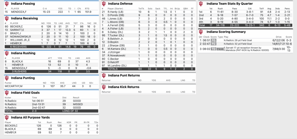 FINAL: No. 2 Indiana Football 13, No. 1 Ohio State 10