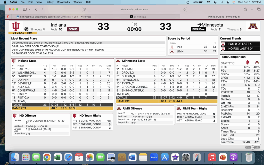 Hoosiers get a stop and then DeVries hits a three. 53-51 Minnesota. Timeout Minnesota with 7:47 left.