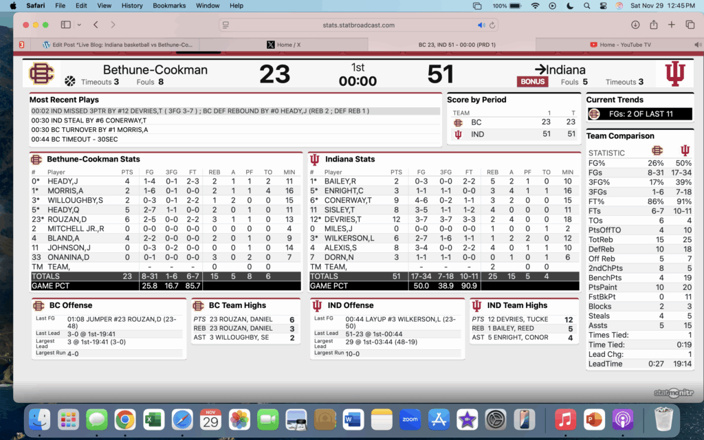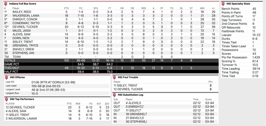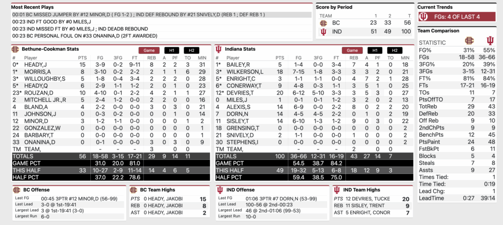Live Blog: FINAL— Indiana basketball 100, Bethune-Cookman 56