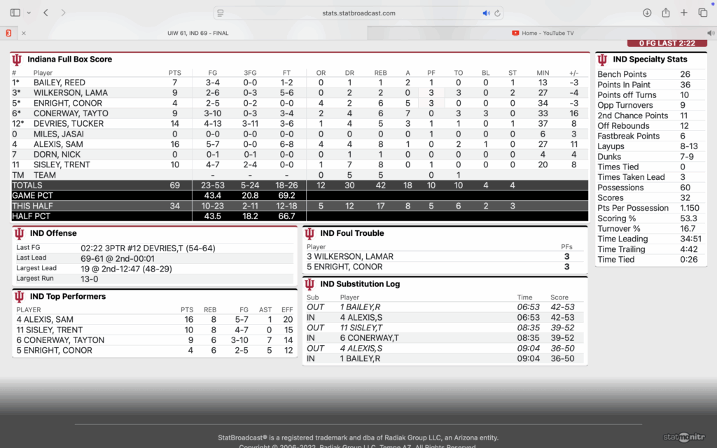 Media timeout at at 6:23: Indiana basketball 53, UIW 42