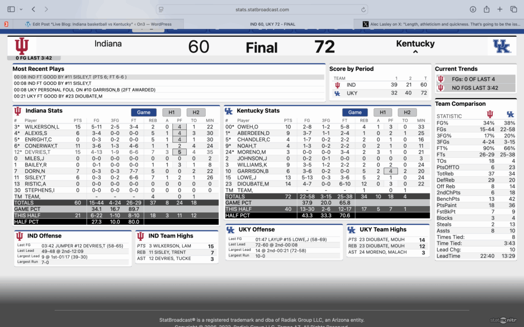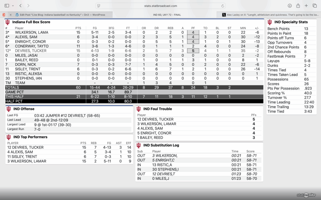 Kentucky up 59-51 now. Hoosiers lost a ton of momentum.