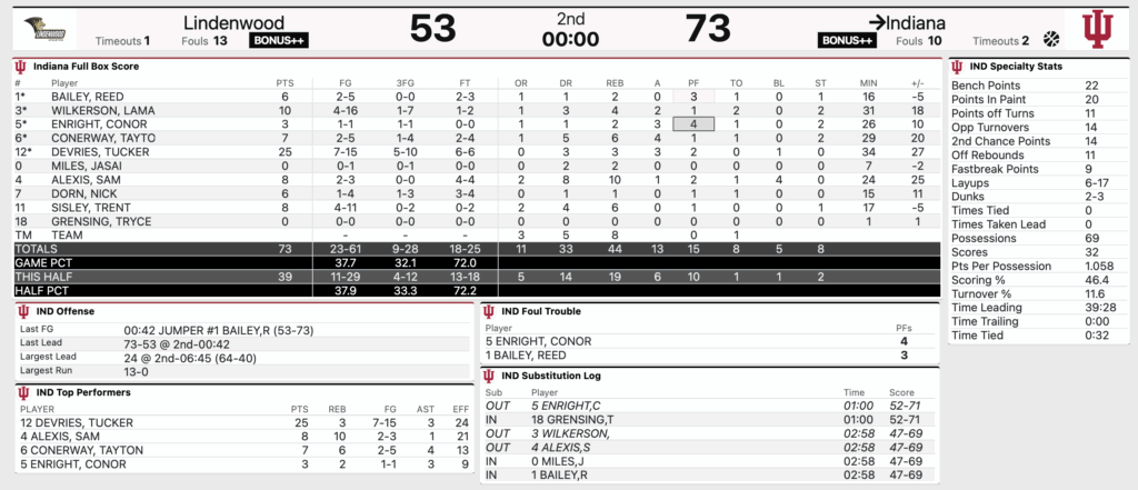 Live Blog: Final: Indiana basketball 73, Lindenwood 53