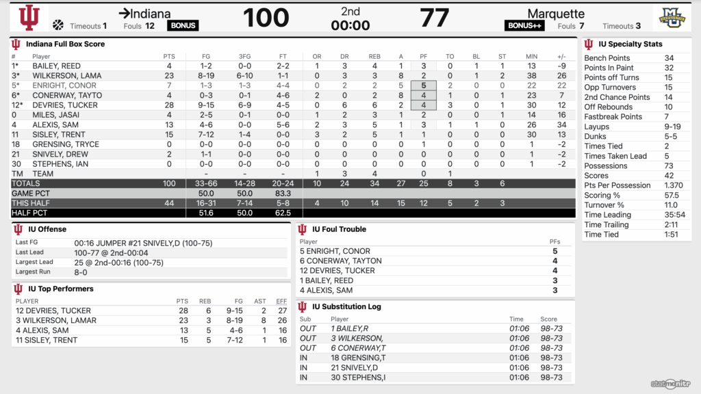 Live Blog: FINAL — Indiana basketball 100, Marquette 77
