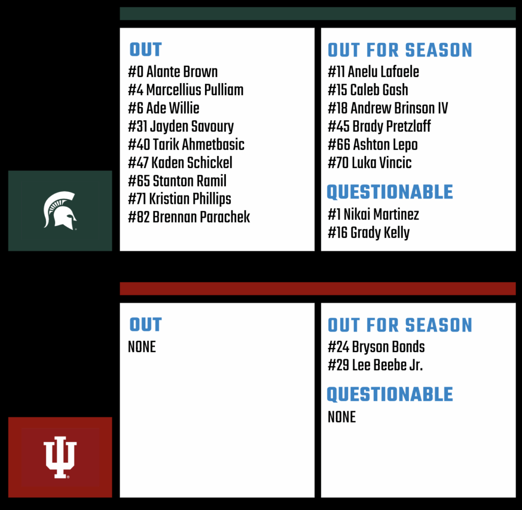 The Hoosiers are 27.5-point favorites against the Spartans with an over/under of 49.5 points per BetMGM.