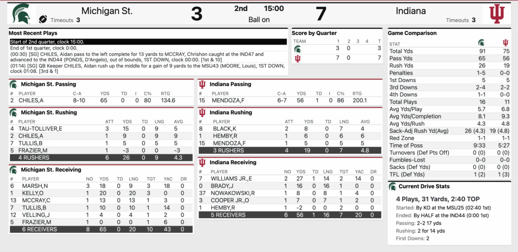 10/18/2025 02:56:44 PMQ1 2:40: Indiana Football 7, Michigan State 3