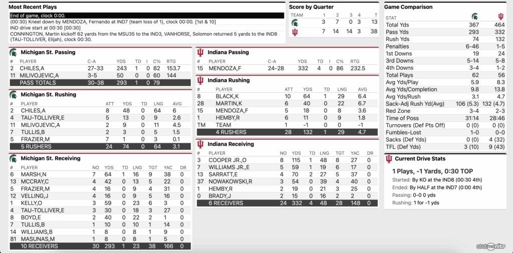 Live Blog: FINAL— Indiana Football 38, Michigan State 13