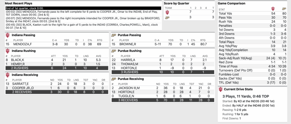 END of Q1: No. 2 Indiana Football 7, Purdue 3