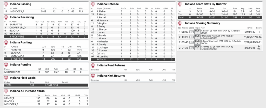 HALFTIME: No. 2 Indiana Football 28, Purdue 3