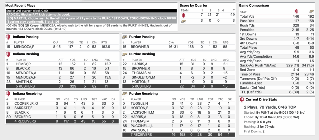 END of 3Q: No. 2 Indiana Football 49, Purdue 3