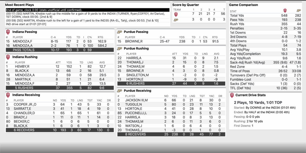 Live Blog: FINAL— Indiana Football 56, Purdue 7