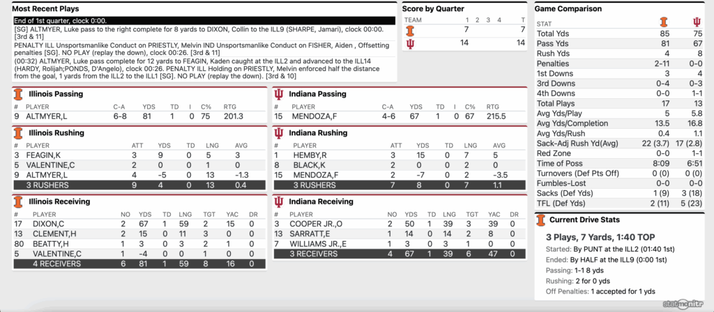 End of 1Q: Indiana Football 14, Illinois 7