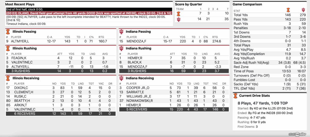 HALFTIME: Indiana Football 35, Illinois 10