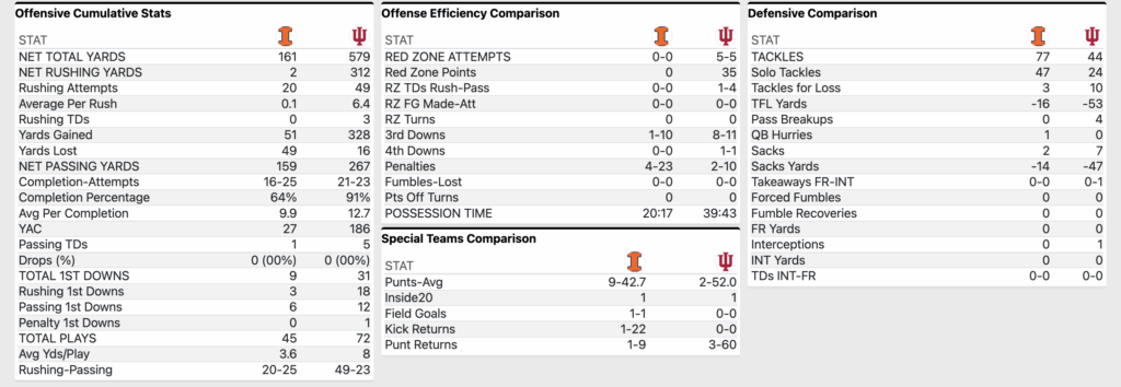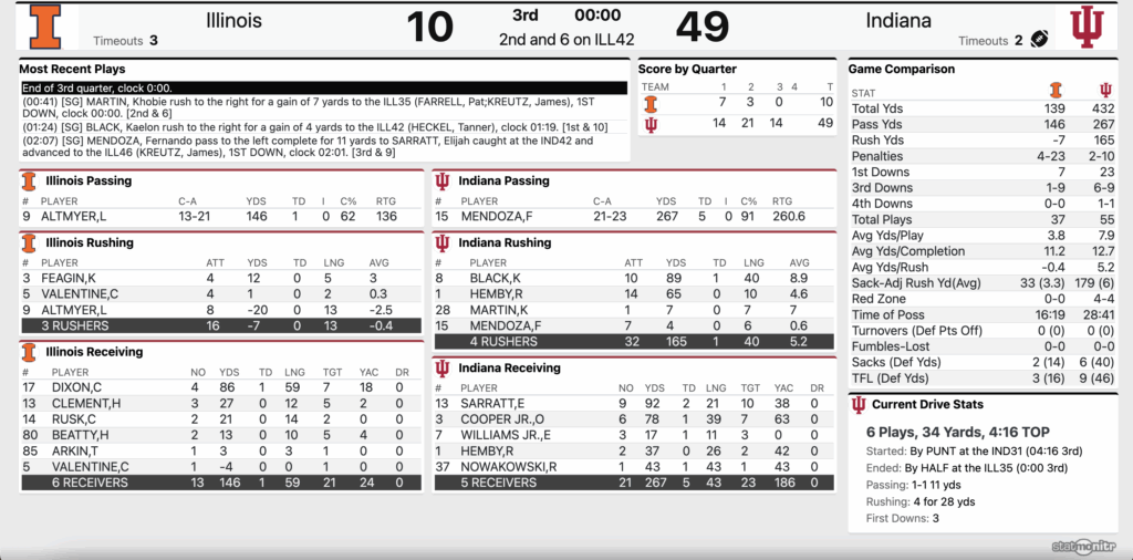END OF 3Q: Indiana Football 49, Illinois 10