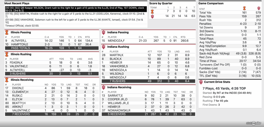 Live Blog: FINAL — No. 19 Indiana Football 63 vs No. 9 Illinois 10