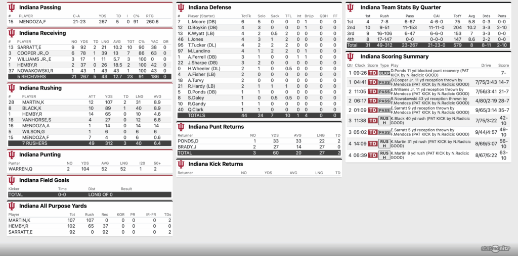 FINAL: No. 19 Indiana Football 63, No. 9 Illinois 10