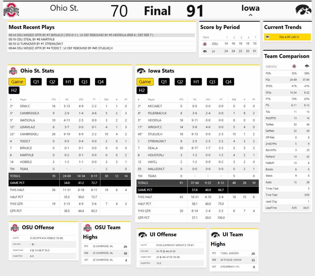 BOX SCORE: #10 IOWA 91 #12 OHIO STATE 70
