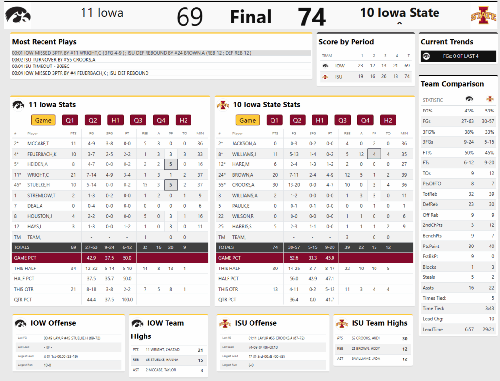 BOX SCORE: #10 IOWA STATE 74 #11 IOWA 69