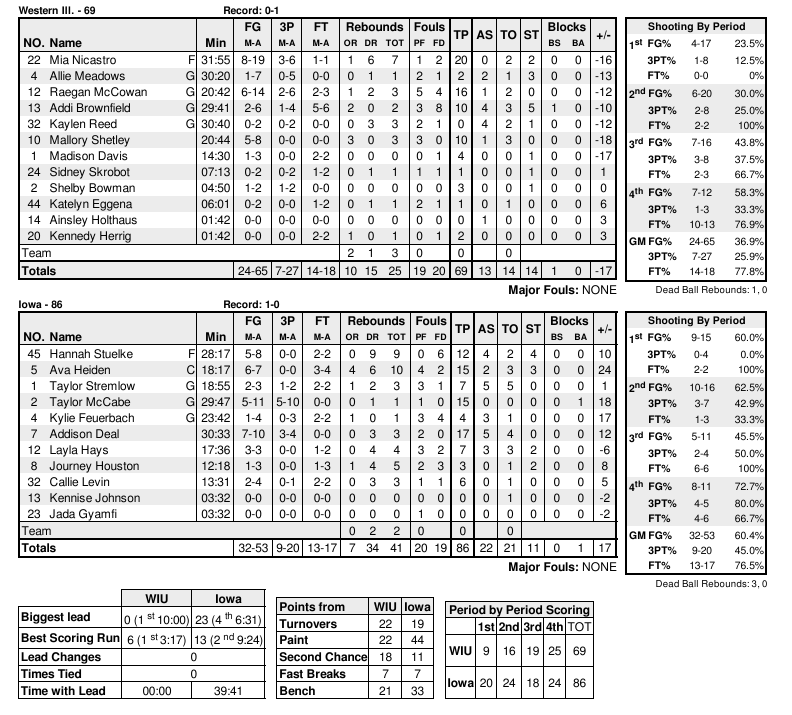 BOX SCORE: IOWA 86 WESTERN ILLINOIS 69