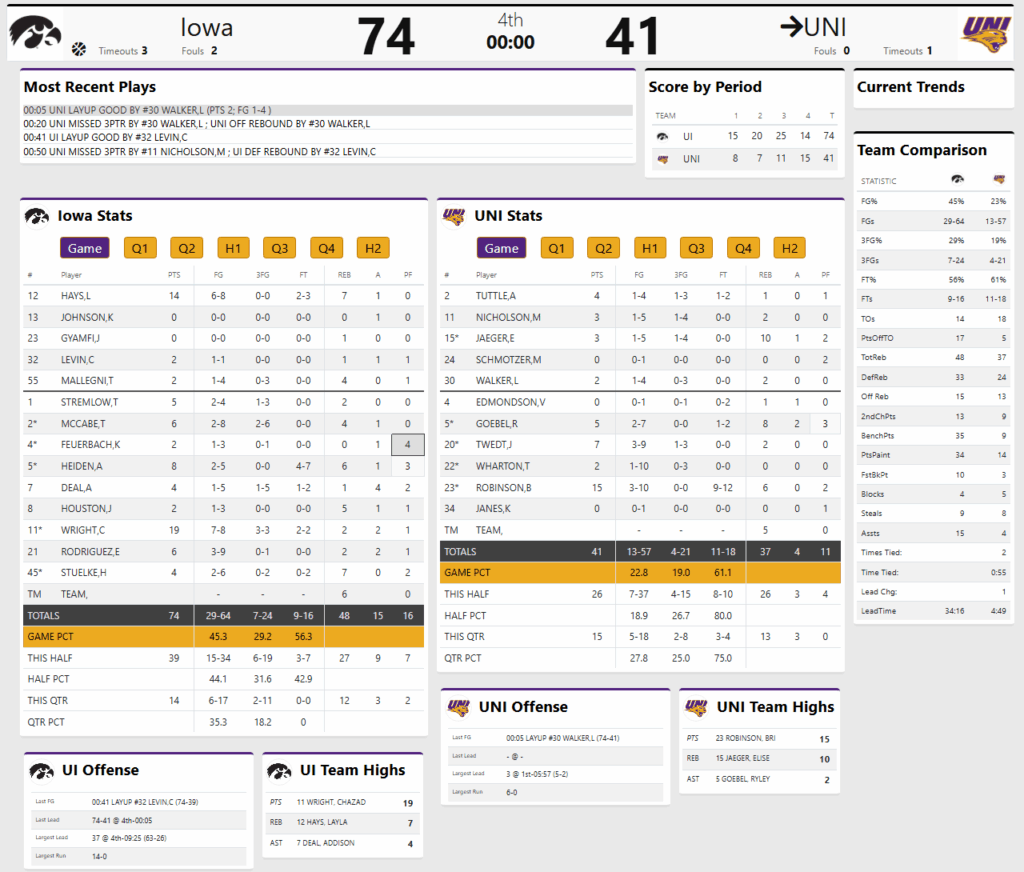 BOX SCORE: IOWA 74 NORTHERN IOWA 41