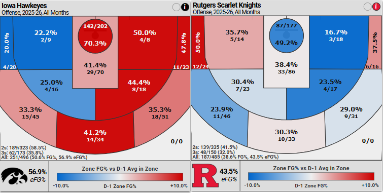 Shooting Heat Maps (CBB Analytics): Iowa and Rutgers