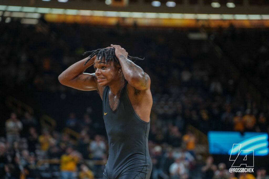 Perhaps it was the unusual weeknight setting – which I noted in my dual preview – the oddity of starting at 197 pounds, or the late arriving crowd for the 6:00 p.m. dual (official attendance listed at 10,971), but the Hawkeyes didn’t exactly get out of the gates quickly to start their 2025-26 season.