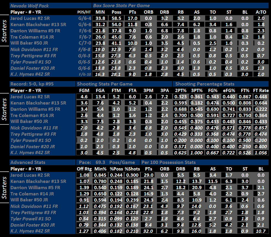 Nevada defeated KenPom No. 74 Tulane in the first round 75-66 and has another solid win this season over No. 103 Grand Canyon that has contributed to their 5-0 start this season.