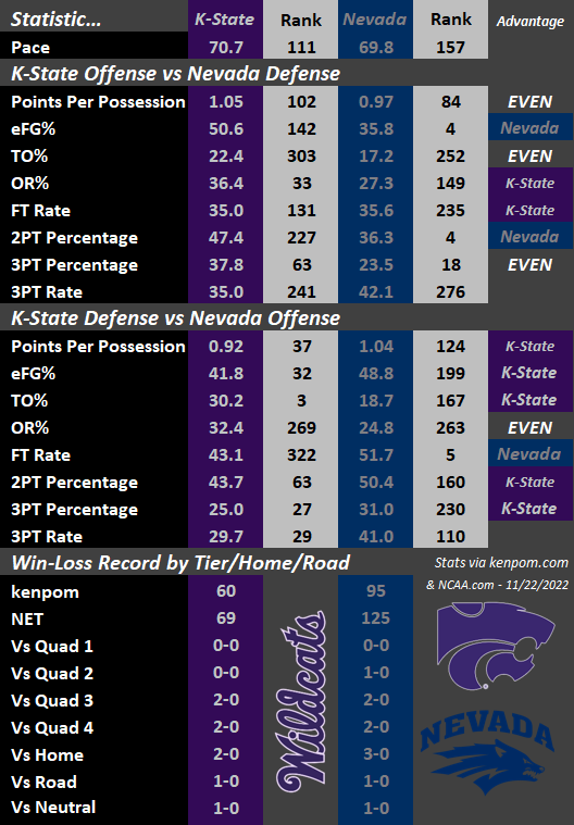 K-State has been pretty efficient just due to how open they find their guys due to great ball movement and spacing. It just hasn’t been consistent. On the flip side, Nevada is known for playing great defense that limits open looks.