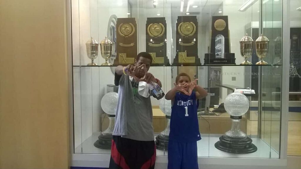 A Louisville native, White grew up a die-hard Kentucky fan, the kind who tuned in to every game, wore the gear, and dreamed of playing for the Wildcats one day. His mom even sent KSR several childhood photos of Meechie in Rupp Arena, Memorial Coliseum, the Joe Craft Center, and our own KSBar and Grille, where he got a selfie with Matt Jones.