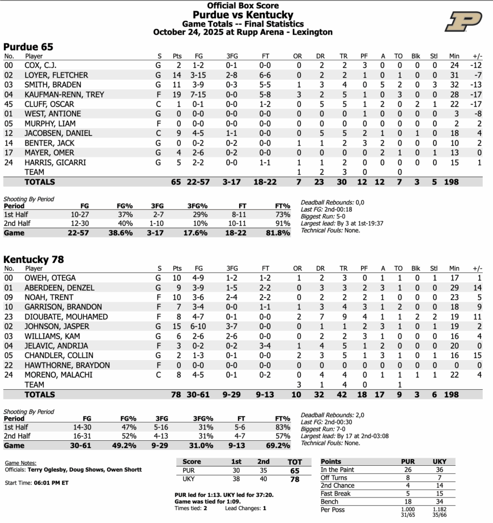 The No. 9 Kentucky Wildcats, missing two potential starters in Jaland Lowe and Jayden Quaintance, took it to the top-ranked Purdue Boilermakers on Friday night in Rupp Arena, closing out a 78-65 win in front of a jam-packed crowd. This one sure didn’t have the feel of a game that won’t count in the win-loss column.