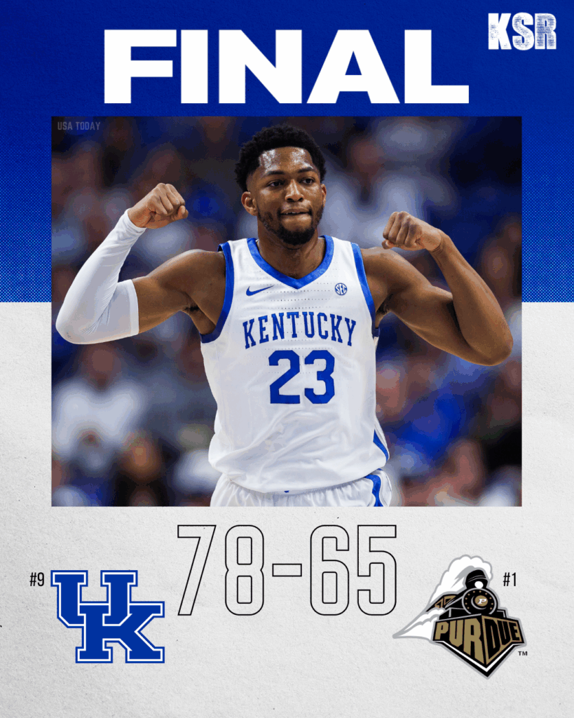 This time, the roof did come off the building. Kentucky took a 74-57 lead into the final media timeout. Purdue would pour in some garbage time points (not before Johnson lit the crowd up one more time with a tough finish), but the ‘Cats were able to cruise to the win in the end.