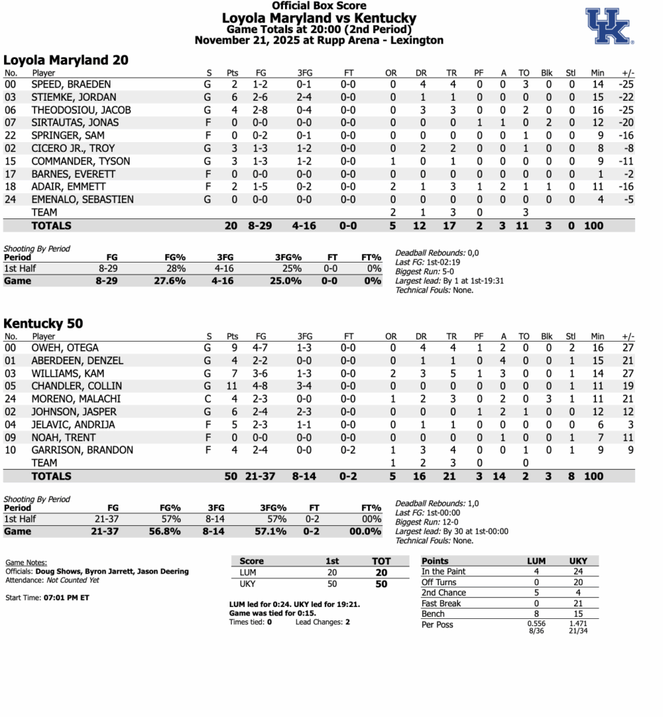 HALFTIME: Kentucky is right back on track against Loyola Md.