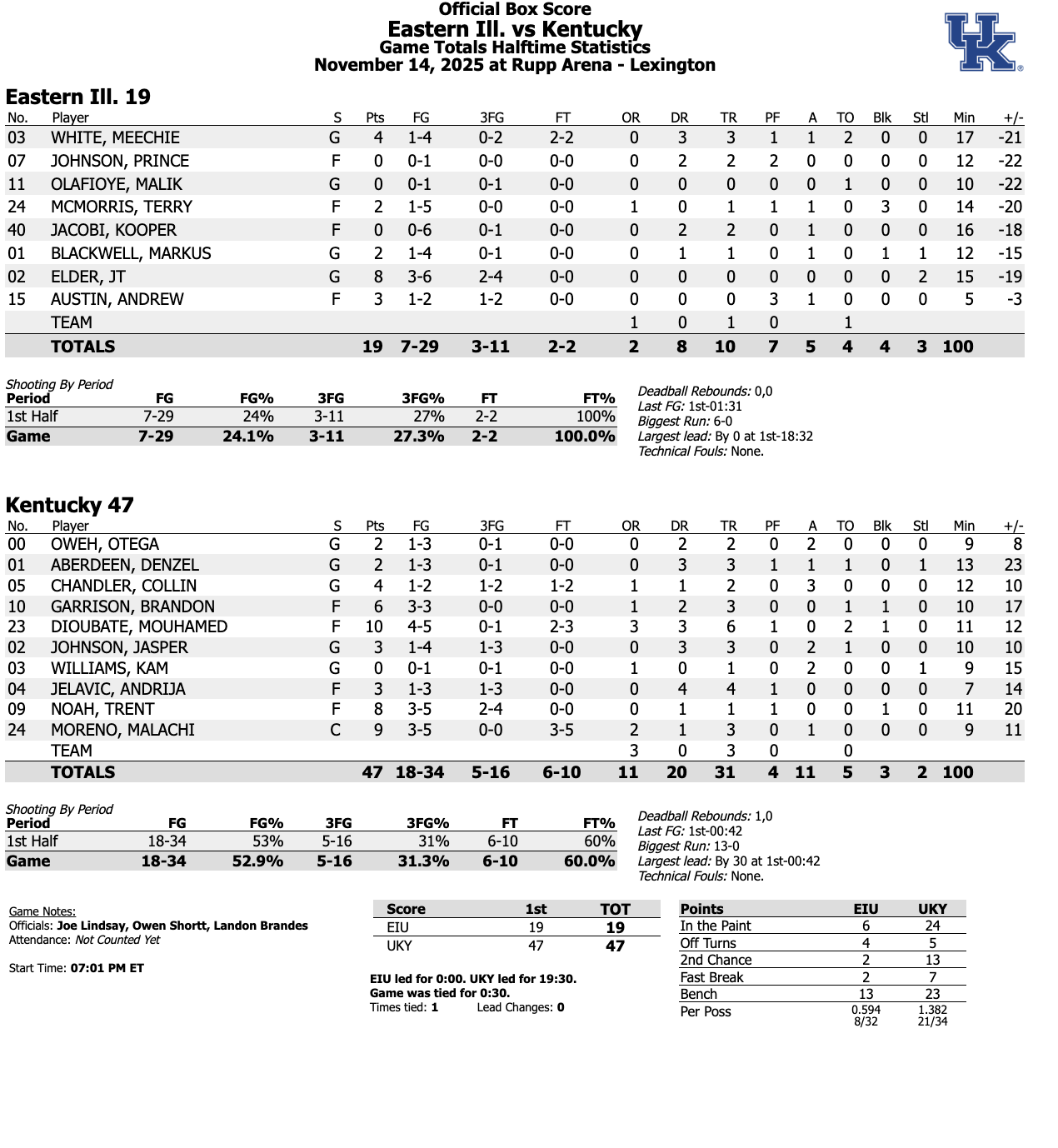 HALFTIME: Kentucky leads Eastern Illinois by... a lot