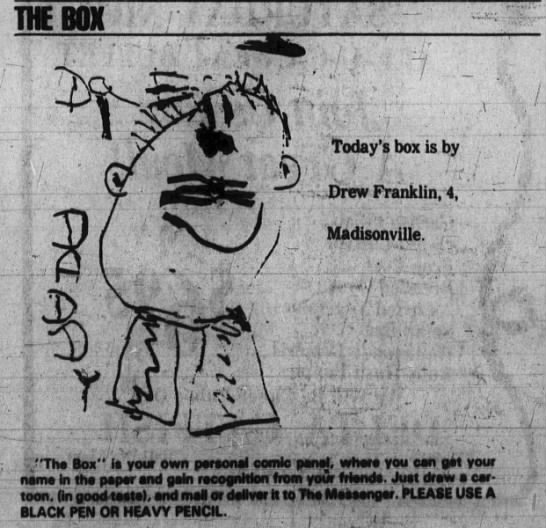 His generosity is not the greatest gift. That actually comes from Corey Price who scoured the archives of The Madisonville Messenger to bring you images and anecdotes from Drew's past, like his senior class picture from 2003 that you see above and this drawing of his father that Drew created when he was only four years old.