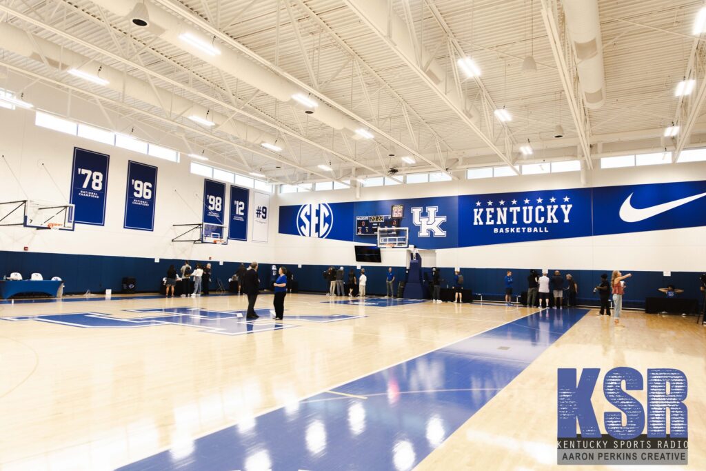Once Pope’s press conference ended, we moved to the practice court, which, by the way, has been completely remodeled since last season. The new design highlights Kentucky’s tradition and history, rather than just its connection to the NBA pipeline and Calipari’s favorites. It feels more like Kentucky basketball again, with a spot waiting for the next banner on the wall commemorating the Wildcats’ eight championships.