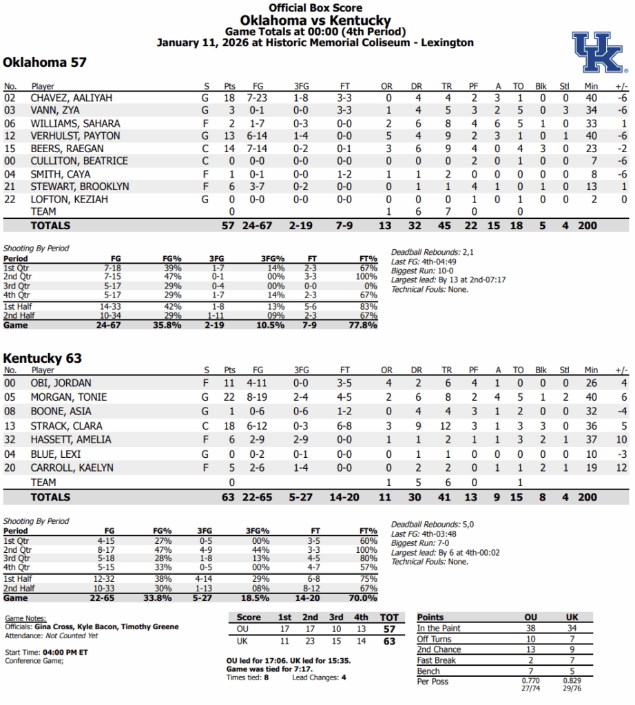 Both Kentucky and Oklahoma entered Sunday’s matchup off a loss, so you knew both teams were looking to get back on the right foot with a statement win. Without Teonni Key, getting a win over the Sooners would be tough, but certainly not impossible. No team is perfect after all. Well, except for the teams that have gone undefeated anyway.