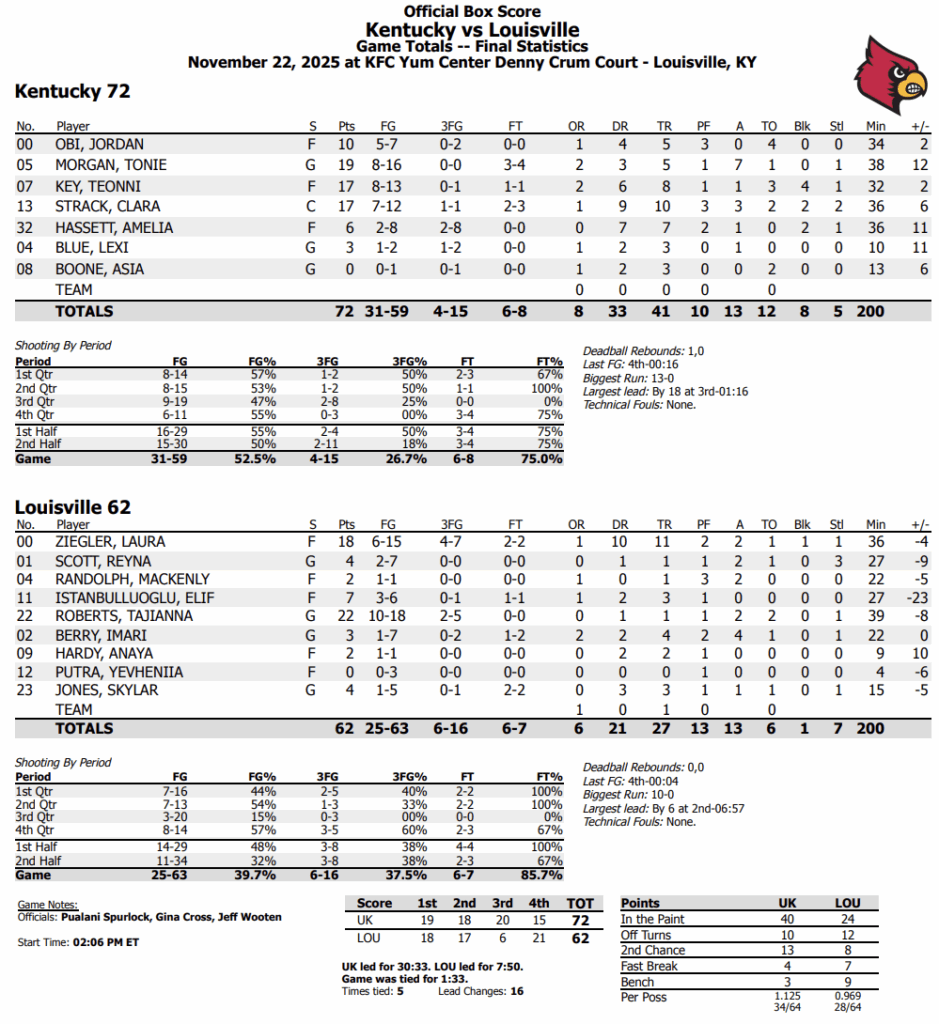 UK WBB 72, UofL 62
