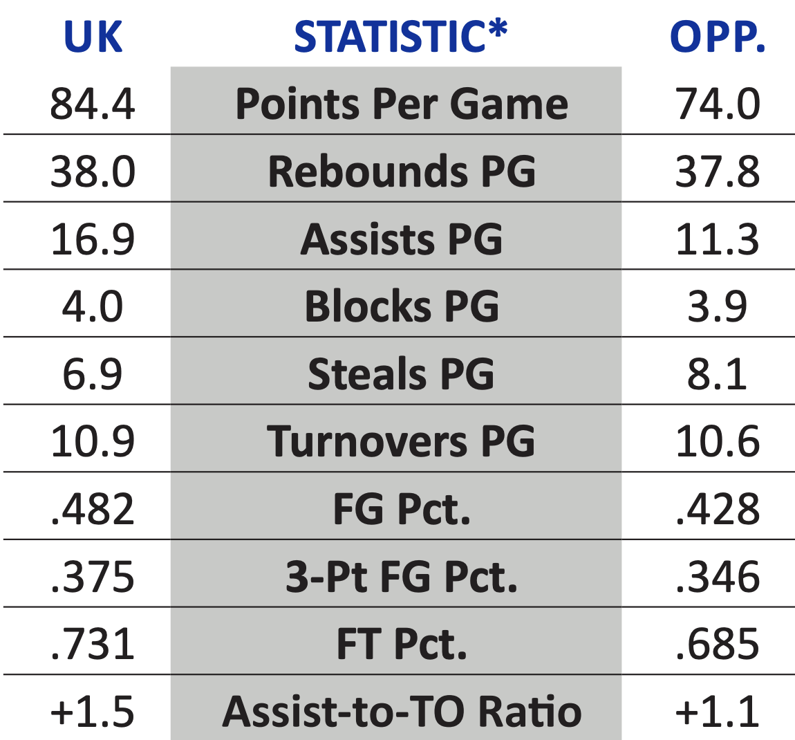 (via Kentucky’s game notes, based on 2024-25 season statistics)