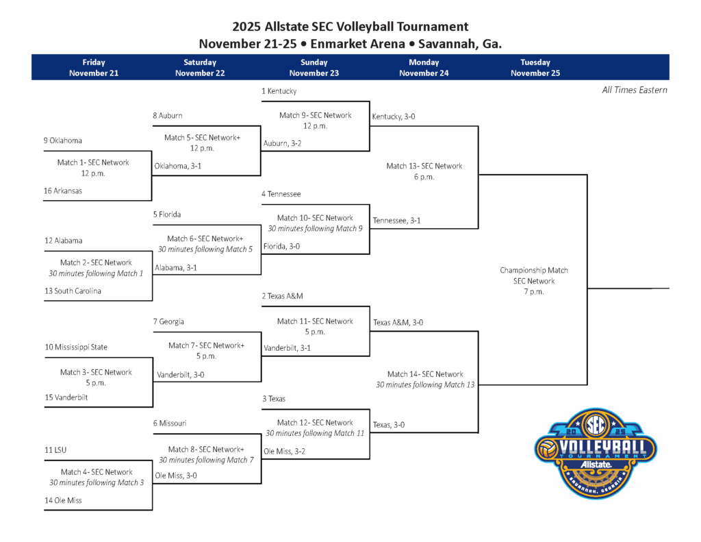 The Wildcats get right back to it today, playing Tennessee in the semifinal round. The Vols are the No. 4 seed in the field, coming off a win over Florida, and they’ll meet UK at 6 p.m. to play for a spot in the championship match. Kentucky beat No. 19 Tennessee earlier this season in Lexington, 3-1.