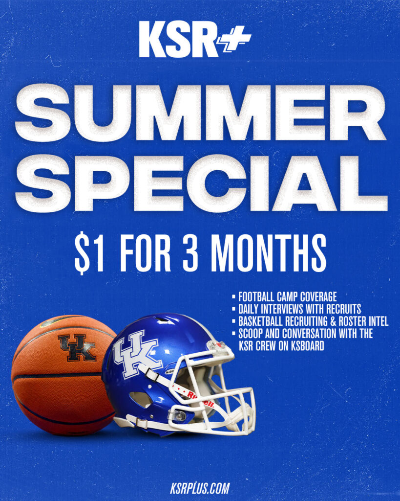 Between basketball roster news, football official visits, and all the recruiting news in between, there’s never been a better time to try KSR+. One U.S. dollar gets you three months of access to daily interviews with recruits from Jacob Polacheck, football deep dives from Adam Luckett, and oodles of scoop and scuttlebutt on KSBoard, along with daily chatter with the KSR crew.