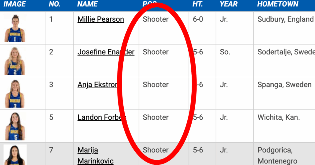Rather than having guards, forwards or centers listed on the roster, every single player is marked down as a “shooter”. It’s not as odd as Fairfield calling their big “road runners”, but it’s definitely unusual. Clearly, Feldhaus wants to make it known that all of her players can, well, shoot the ball.