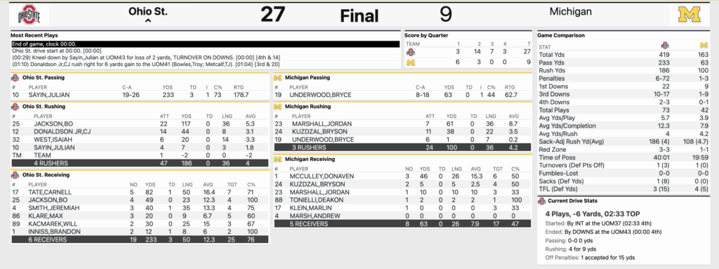 FINAL: Ohio State 27, Michigan 9