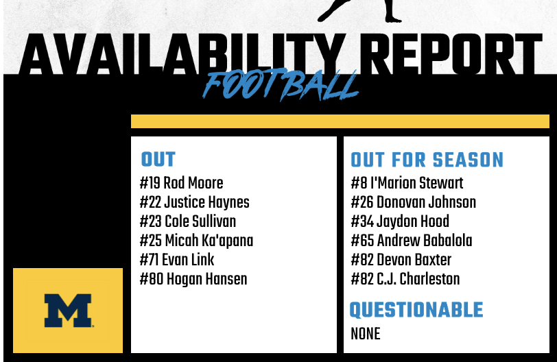 11/15/2025 09:36:37 AMMichigan will be without multiple starters against Northwestern: Rod Moore, Justice Haynes and Evan Link