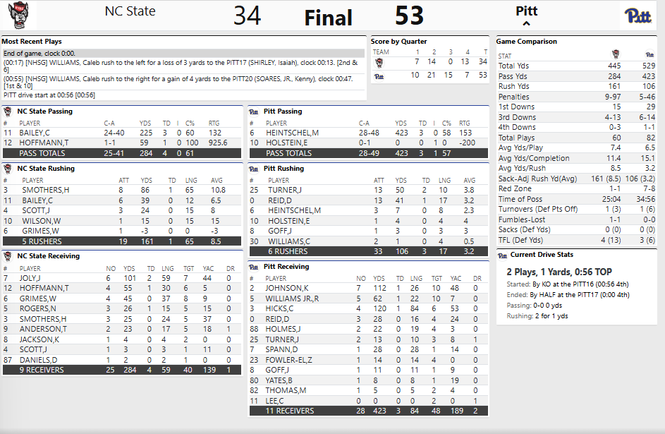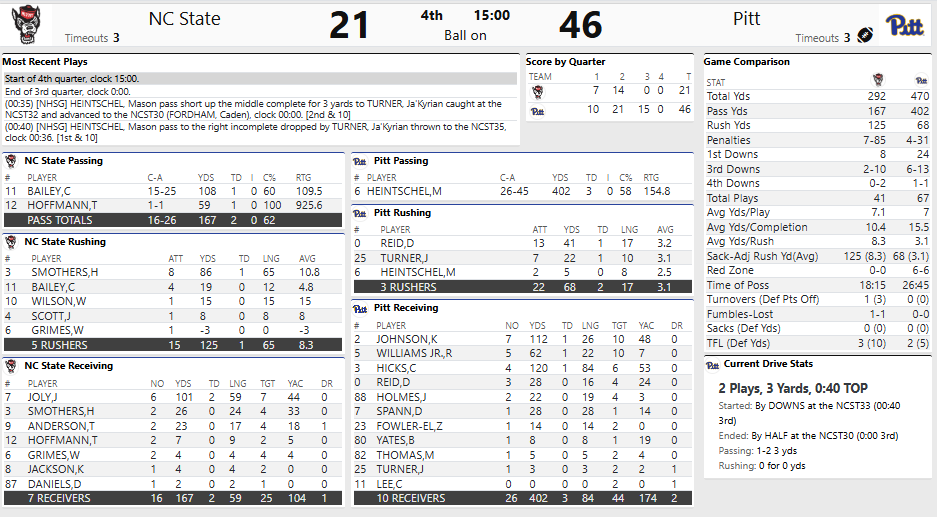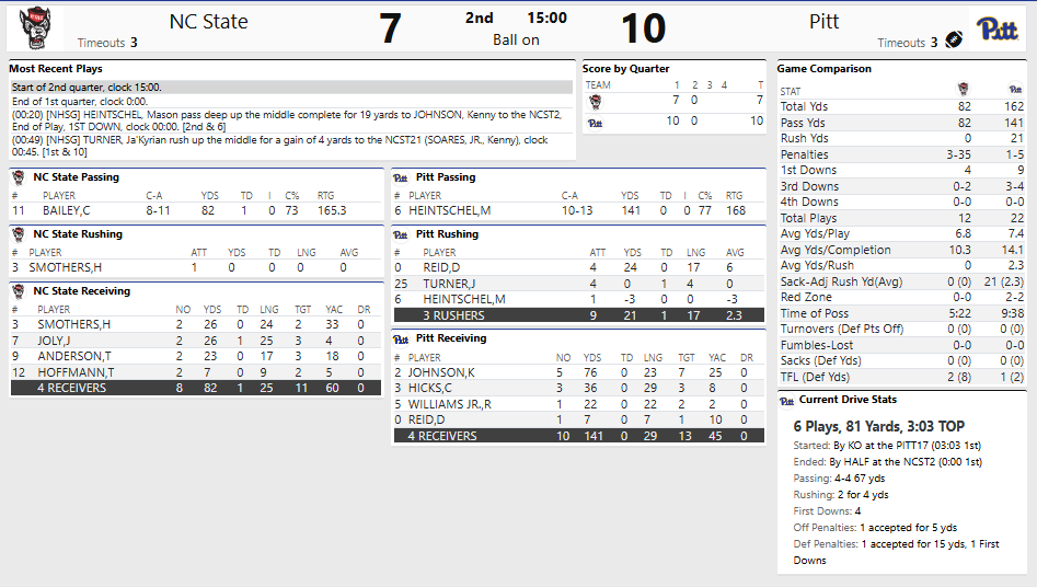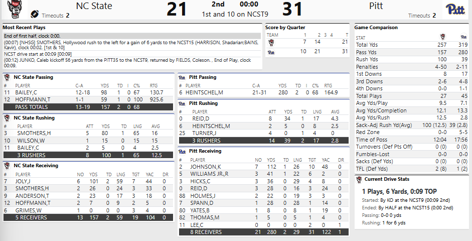 Pitt 31, NC State 21. 2Q 12 seconds left.