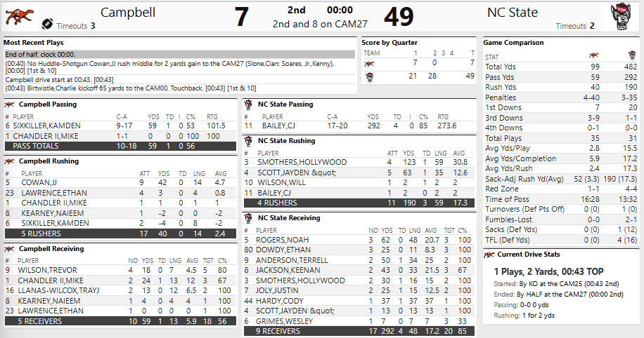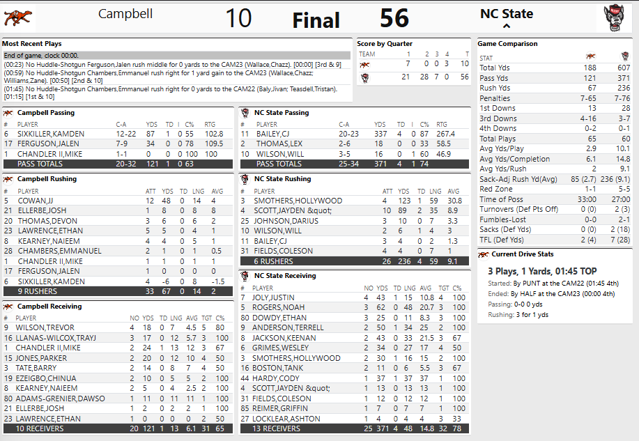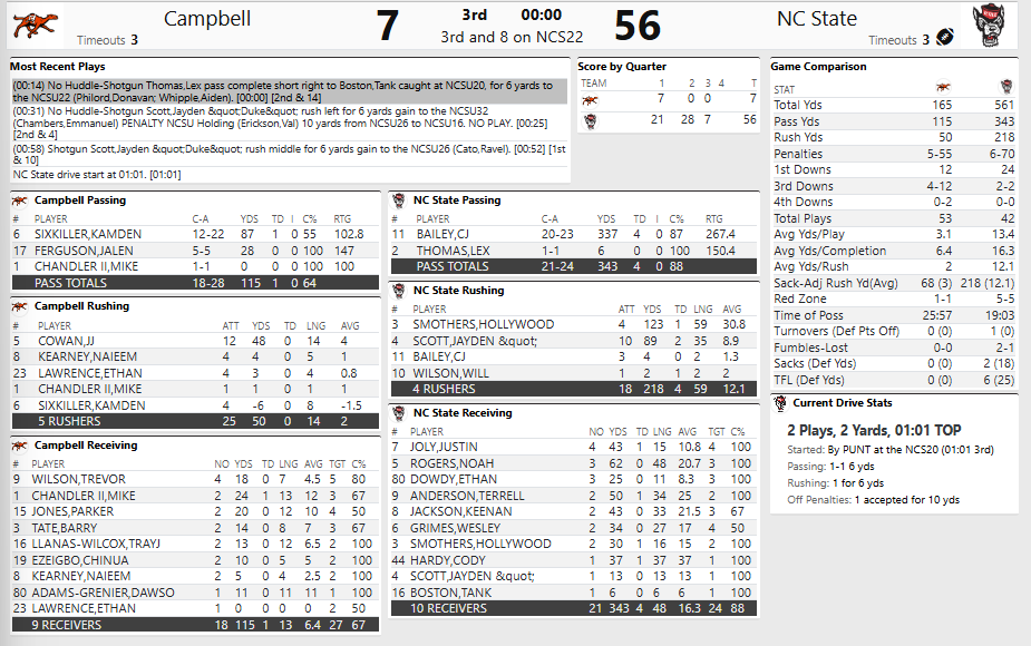Follow along for live updates from the press box as the Camels and Wolfpack battle inside Carter-Finley Stadium.