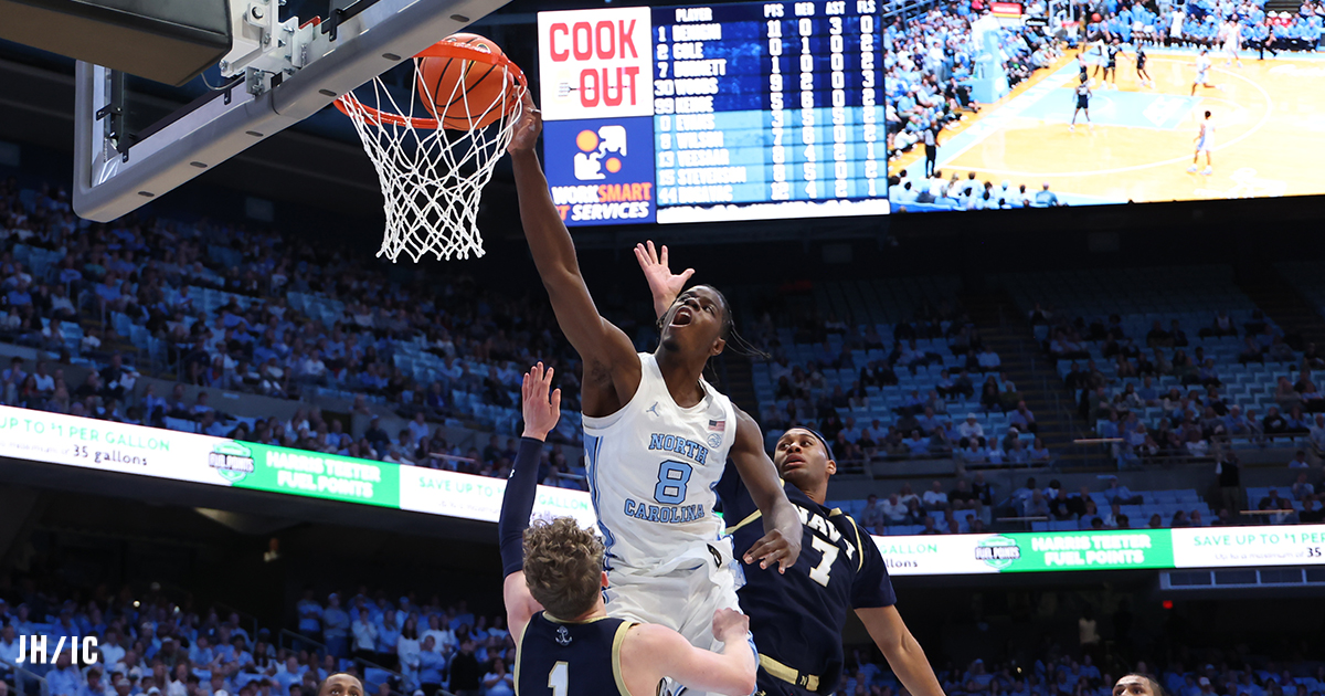 CHAPEL HILL, N.C. — After a fairly lackluster first half from North Carolina, Caleb Wilson’s second half aerial assault sparked some life into the Tar Heels. Inside Carolina’s Jim Hawkins captured the high flying action…