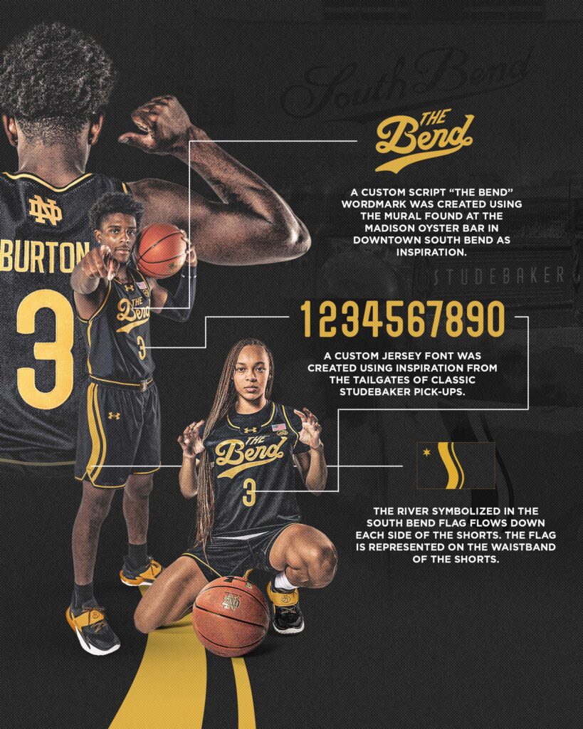 Notre Dame men’s and women’s basketball released new alternate uniforms for the 2025-26 season on Thursday, featuring a tribute to their home city.