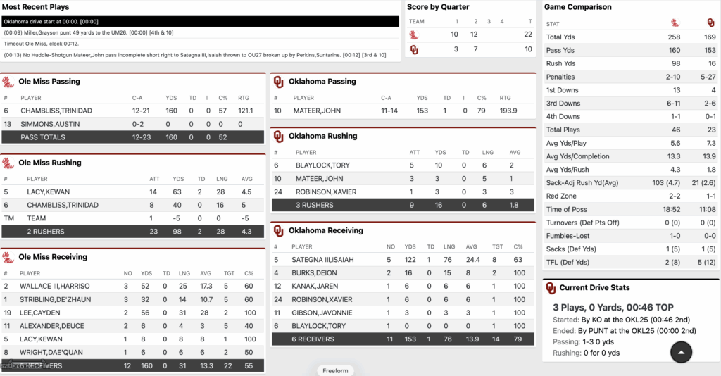 HALFTIME: OLE MISS 22, OKLAHOMA 10